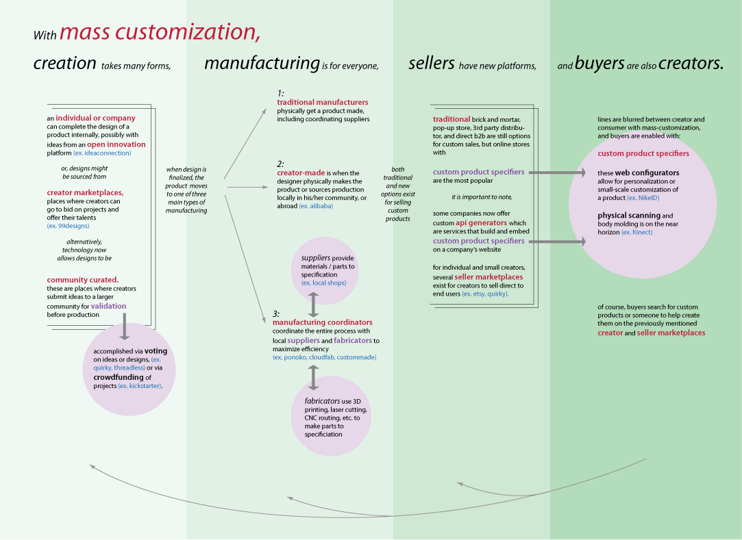 Mass Customization Concept Map admin | December 9, 2011 I created a concept map of mass customization as it stands today, and a secondary sheet showing the companies that play in each space. Open publication – Free publishing – More concept map